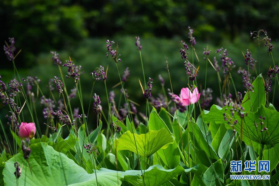 海珠湿地盛开的菖蒲和荷花(6月3日摄)。经过科学治理,生物多样性显著提升,海珠湿地维管束植物从379种增加到630种。 新华社记者刘大伟摄