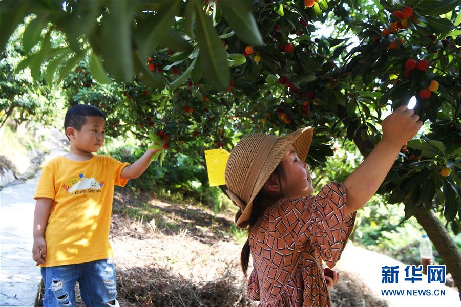 6月4日,小朋友在燕山乡泉水村杨梅基地采摘杨梅。 近日,位于重庆市万州区燕山乡泉水村的1000余亩杨梅陆续进入采摘期。近年来,泉水村通过完善基础设施、举办燕山杨梅节等举措,将杨梅产业与乡村旅游有机融合,有效促进了当地村民就业增收,助力乡村振兴。 新华社记者 王全超 摄