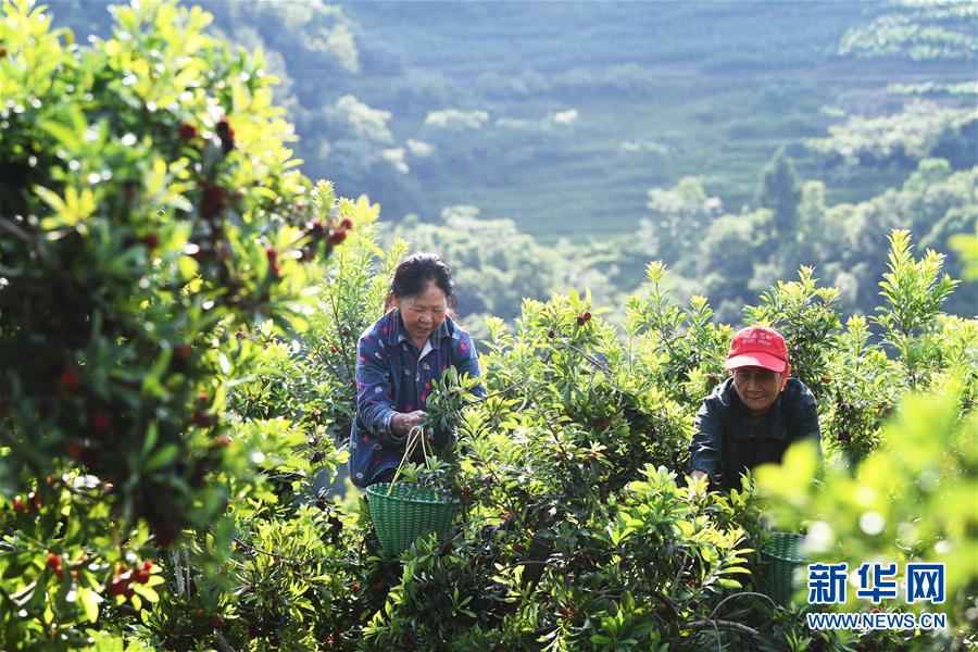 6月4日,工作人员在燕山乡泉水村杨梅基地采摘杨梅。 近日,位于重庆市万州区燕山乡泉水村的1000余亩杨梅陆续进入采摘期。近年来,泉水村通过完善基础设施、举办燕山杨梅节等举措,将杨梅产业与乡村旅游有机融合,有效促进了当地村民就业增收,助力乡村振兴。 新华社记者 王全超 摄