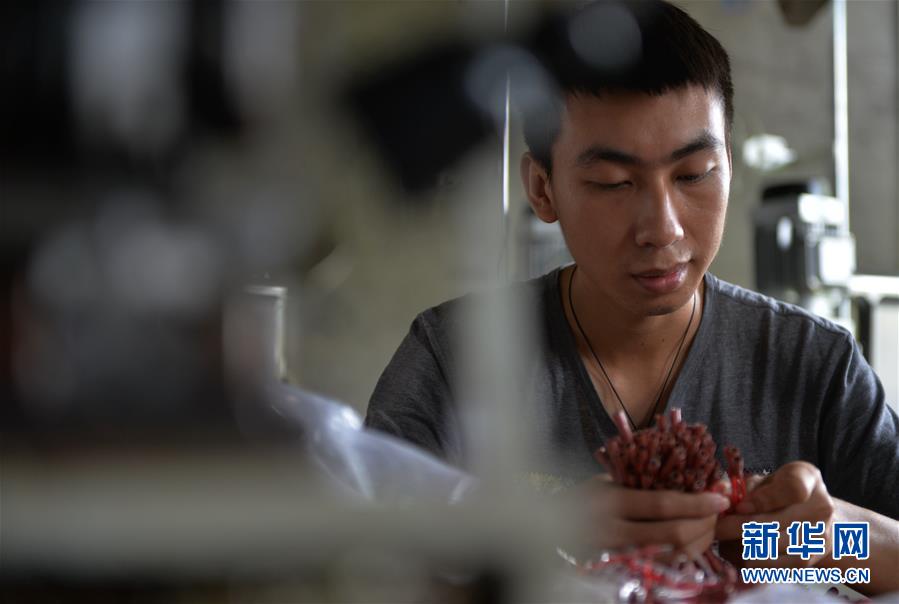 6月4日,一名工人在永州市新田县一处易地搬迁集中安置点的扶贫车间里加工电器零部件。新华社记者 赵众志 摄