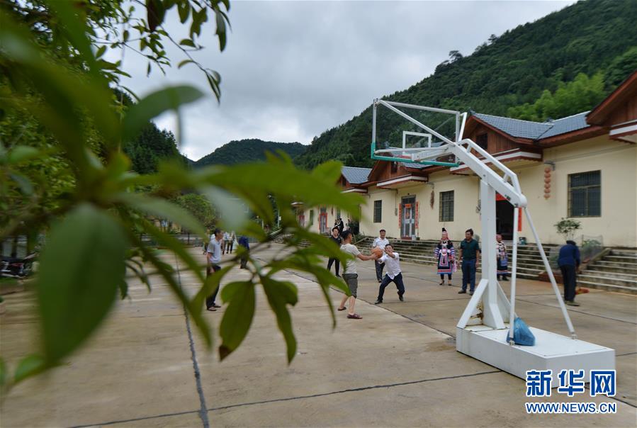 6月3日,人们在永州市新田县两江口村易地搬迁集中安置点内打篮球。新华社记者 赵众志 摄