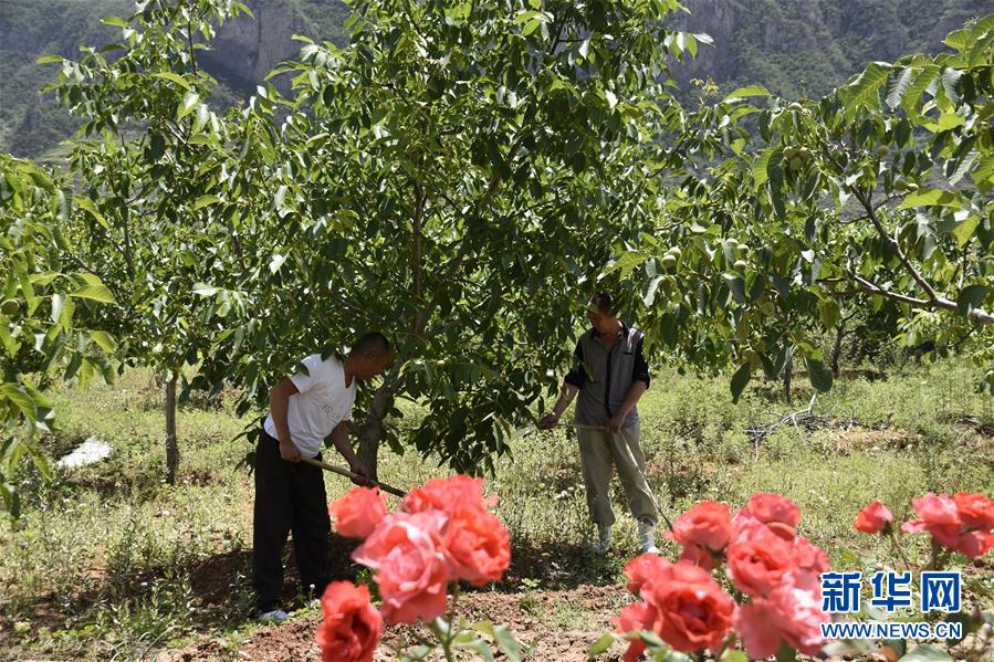 5月22日,工作人员在河北涉县西达镇西达村对核桃树进行管护。 新华社记者 冯维健 摄