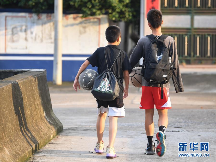 图为6月4日,张家城(右)和同学早上在去往学校的路上。 新华社记者 邓华 摄
