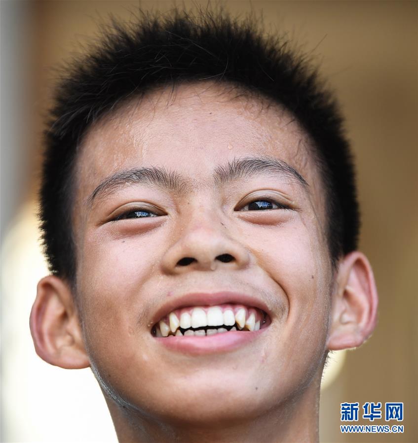 图为6月4日,张家城早课前在学校打篮球后露出笑容。 新华社记者 邓华 摄