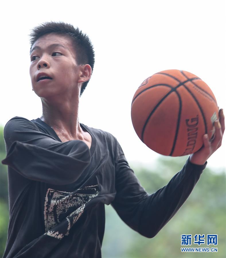 图为6月4日,张家城早课前在学校操场上打篮球。 新华社记者 邓华 摄