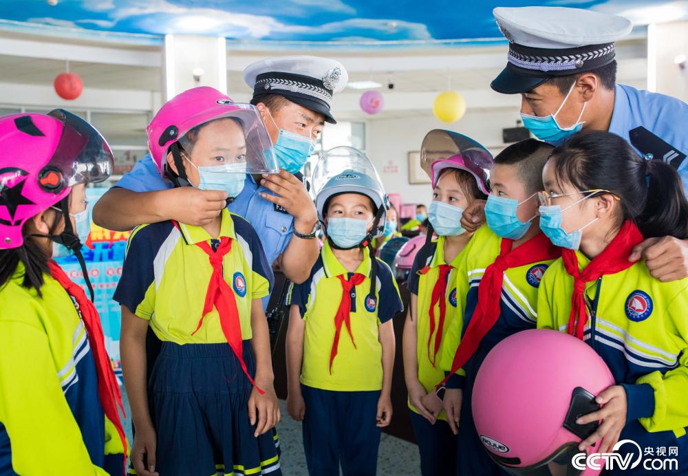 央视网消息:6月4日,内蒙古呼和浩特市玉泉区通顺街小学学生在交警的指导下学习正确佩戴安全头盔。当日,内蒙古呼和浩特市玉泉区通顺街小学联合市公安局交管支队玉泉大队景区中队开展“带好头盔 平安上学”安全守护行动,交警通过现场讲解安全头盔的正确佩戴方法和系安全带的重要性,引导学生在乘坐电动车、摩托车时要正确佩戴安全头盔,避免意外伤害,从小养成文明出行的良好习惯,做文明交通的践行者和传播者。(丁根厚 摄影报道)