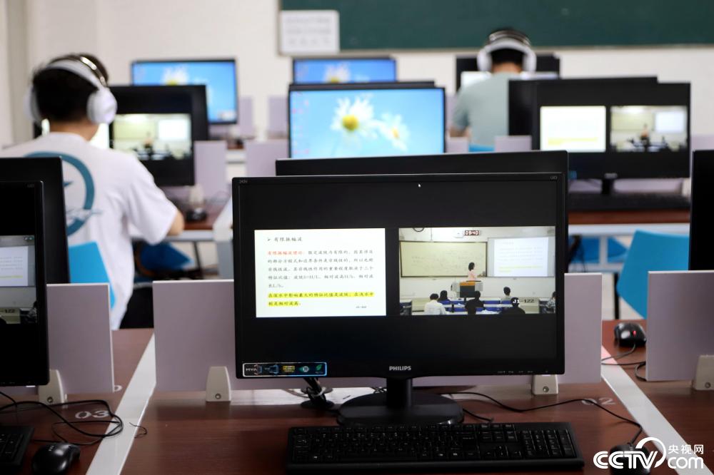 央视网消息:6月3日,山东科技大学学生在学生机房通过课堂直(录)播平台听课。为了解决教室容量问题,促进高校信息化教学进程,山东科技大学在316间教室安装了课堂直(录)播平台,使得“直播课堂”教学模式常态化。该平台具有线上直播录播、线下点播的学习功能,在宿舍或者家里的学生通过该平台可以和教室里的学生同步上课,实现了“同一位老师、同一个教室、同样的内容、同一堂课”的教学模式。(王培珂 摄)