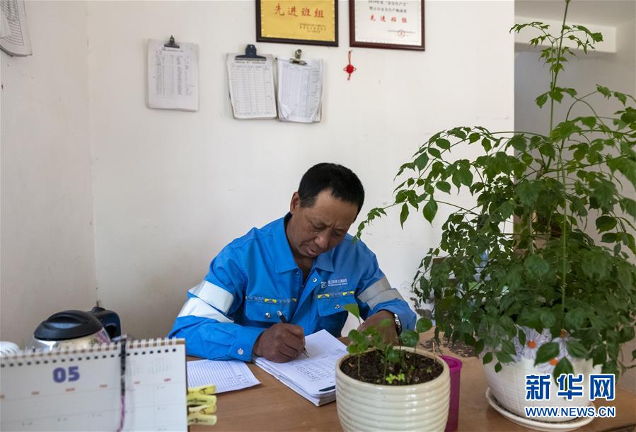 6月4日,回到通济桥码头办公室的李春伟在下班前填写一天的工作日志。新华社发(陈欣波 摄)