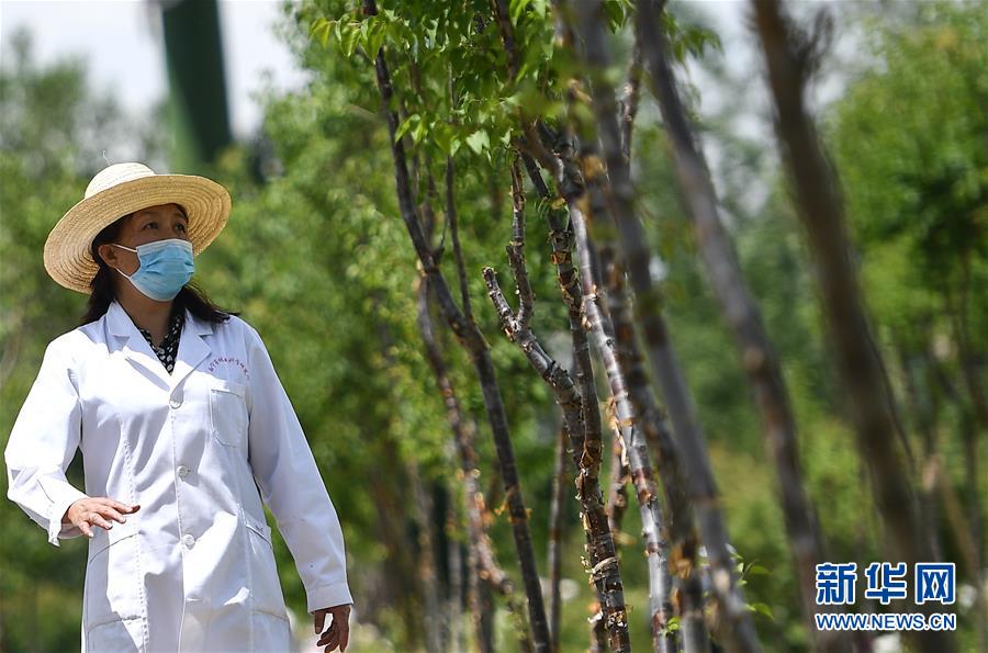 6月3日,在西宁市林业科学研究所祁家城育苗基地,张锦梅在查看丁香长势。 新华社记者 薛玉斌 摄