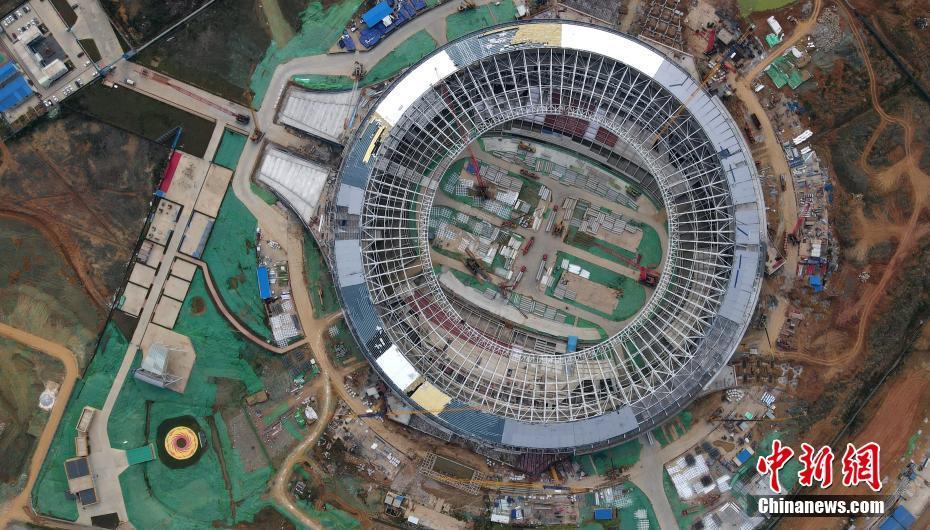 6月4日,四川成都,空中俯瞰正在建设的东安湖体育中心项目。作为第31届世界大学生夏季运动会主场馆的东安湖体育公园体育场馆项目建设进入冲刺,幕墙安装工作正在加速进行。 中新社记者 刘忠俊 摄