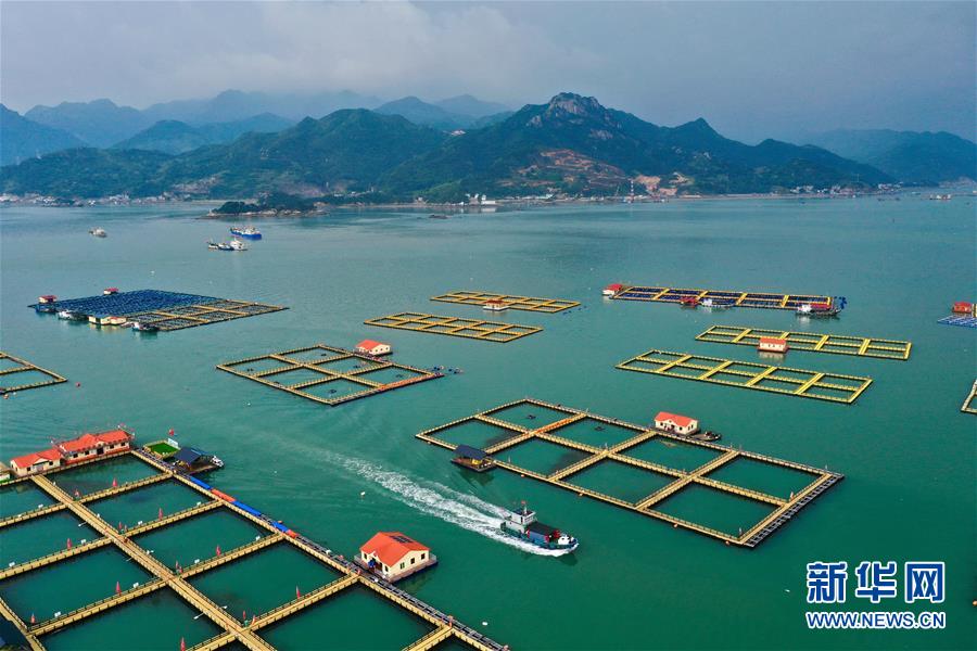 这是6月3日拍摄的福建省宁德市三都澳海域升级改造后的渔排养殖区(无人机照片)。 新华社记者 姜克红 摄