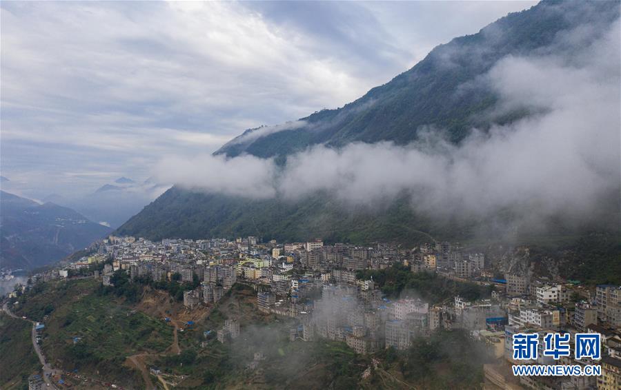 云雾缭绕的四川省金阳县县城(6月5日摄,无人机照片)。 当日,一场大雨过后,位于大凉山腹地的四川省金阳县县城在云雾中若隐若现,美如仙境。 四川省金阳县林草资源丰富,森林覆盖率达41.68%。近几年来,当地政府立足“生态立县”发展思路,把林业产业建设成为全县重要的增收工程、生态工程和小康工程,全力发展青花椒、核桃、华山松“三棵树”产业。 新华社记者 江宏景 摄