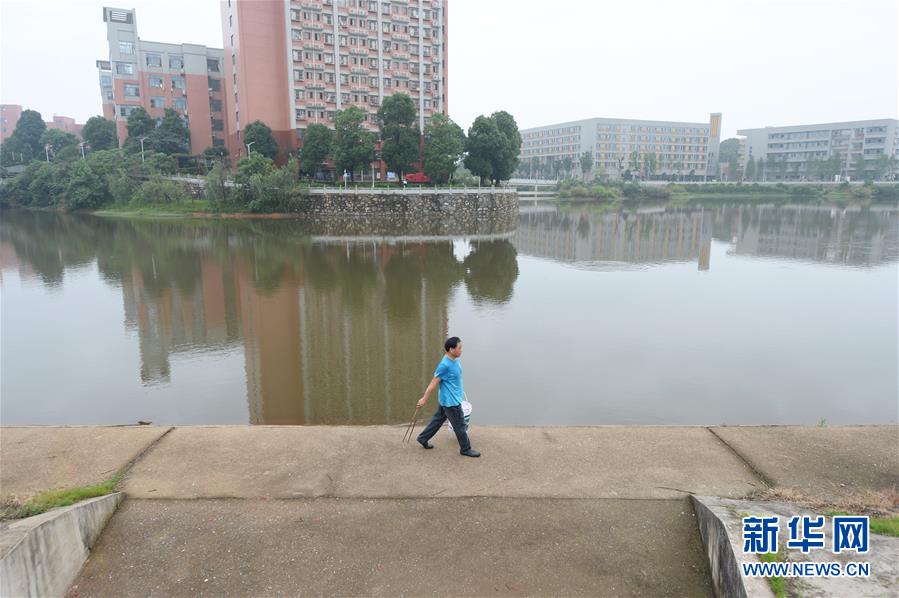 6月4日,章志标在长沙县蓝田村徒步捡垃圾。新华社发(陈振海 摄)