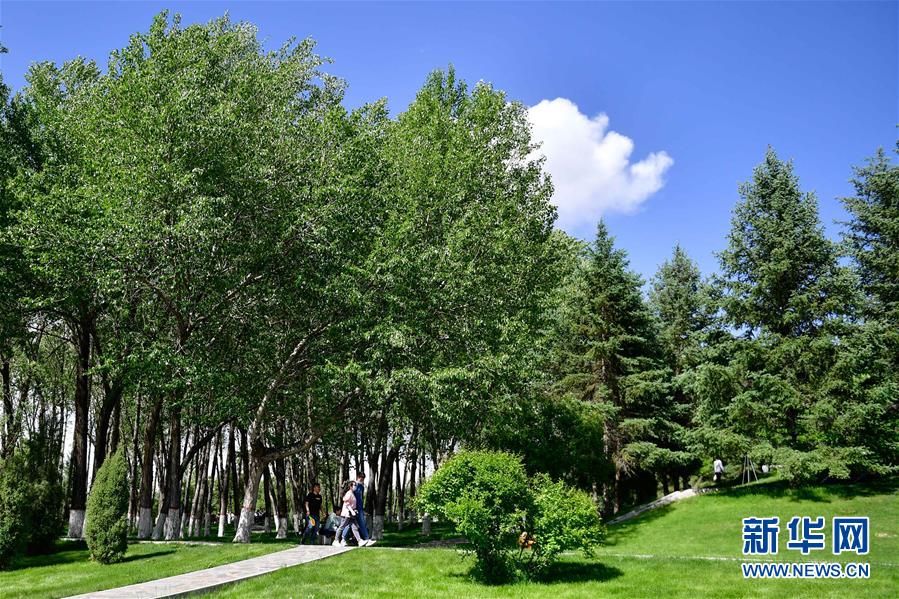 5月30日,西宁市民在青海省西宁市南山公园内散步。 近年来,青海省西宁市大力开展植树造林,在半干旱气候、湿陷性黄土的现实情况下破解种树难题,目前全市建成区绿化覆盖率已达40.5%。 新华社记者 张龙 摄