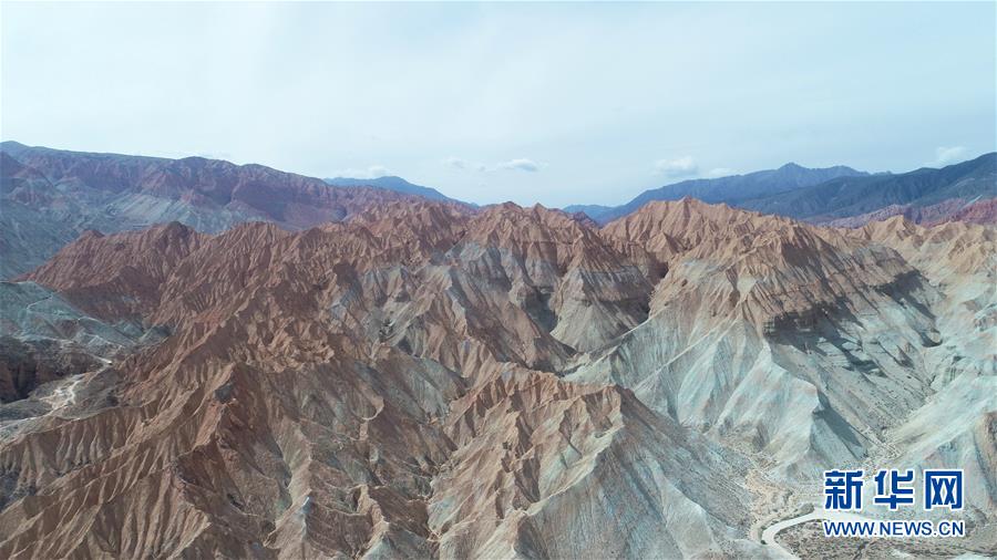 这是6月5日拍摄的位于青海省海南藏族自治州贵德县境内的丹霞地貌(无人机照片)。 在青海省海南藏族自治州贵德县境内,色彩斑斓的丹霞地貌美如画卷。 新华社记者 赵玉和 摄