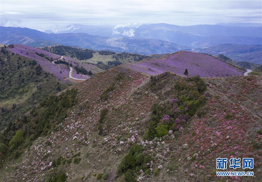 百草坡省级自然保护区里漫山遍野的索玛花(6月5日摄,无人机照片)。新华社记者 江宏景 摄