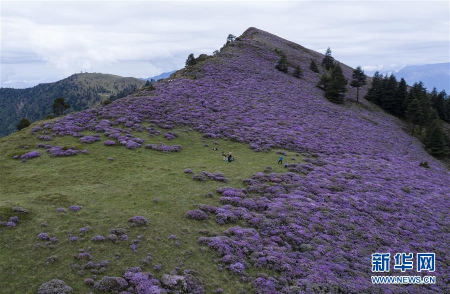 6月5日,游人徜徉在百草坡省级自然保护区漫山遍野的索玛花丛中(无人机照片)。新华社记者 江宏景 摄