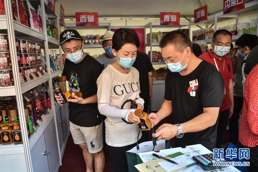 6月6日,在王府井大街活动现场,消费者在购买地方特产。 当日,北京消费季正式开启,进一步推动北京各行业复商复市,加快实现消费回暖。 新华社记者 彭子洋 摄