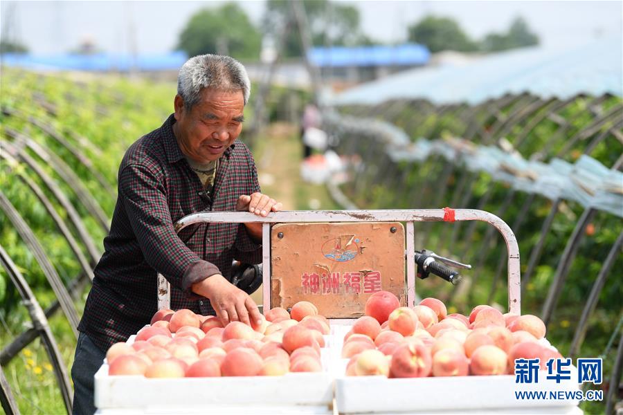 6月7日,乐亭县新寨镇芍榆坨村农民整理刚采摘的鲜桃。新华社记者 牟宇 摄