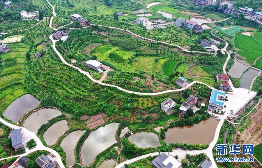 这是6月7日拍摄的临江镇福德村景象(无人机照片)。 时下,重庆市开州区临江镇福德村一带生机盎然,秀美如画。近年来,福德村深入开展“资源变股权、资金变股金、农民变股民”三项改革,大力发展柑橘、优质再生稻等特色产业,取得了经济和生态效益双丰收。 新华社记者 王全超 摄