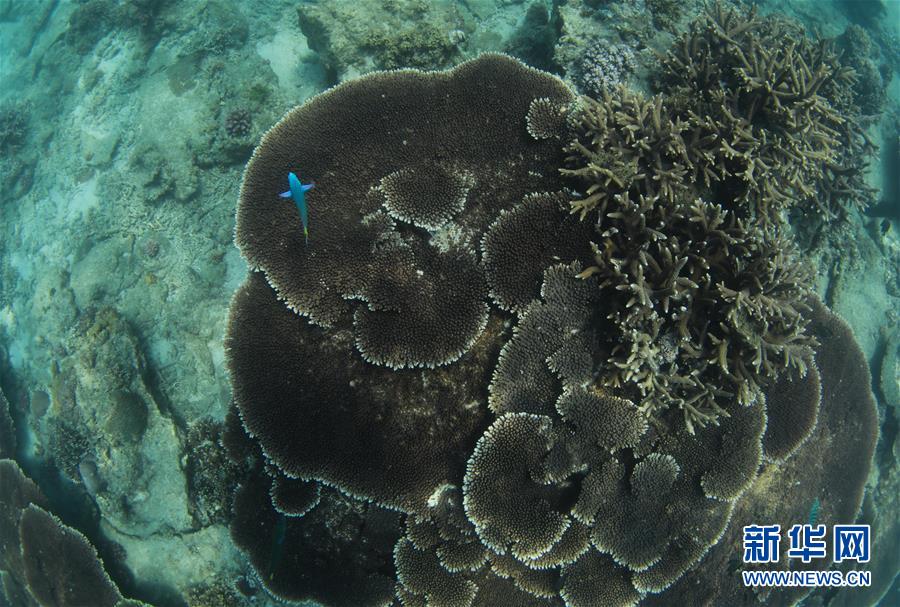 在海南三亚蜈支洲岛海域,珊瑚在海洋牧场茁壮成长(3月28日摄)。 新华社记者 杨冠宇 摄