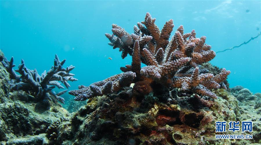 这是海南三亚蜈支洲岛海域海洋牧场内生长的珊瑚(4月28日摄)。 新华社记者 杨冠宇 摄