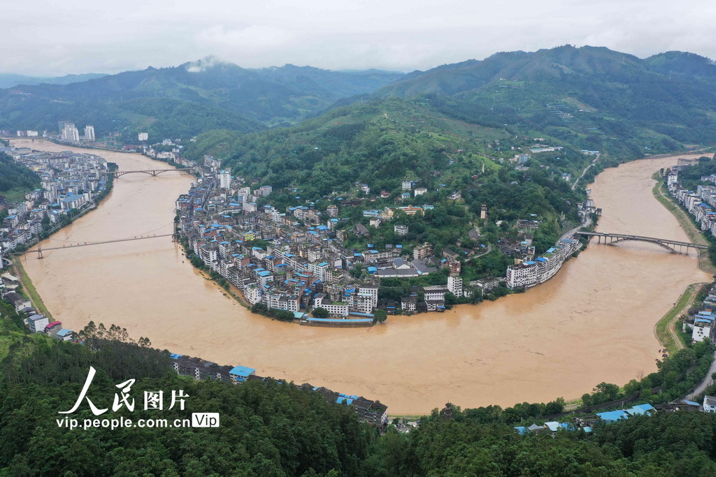 受上游持续强降雨影响,2020年6月8日上午11时,都柳江洪峰过境贵州省从江县城,洪峰流量约7200m?/s,水位188.4m,超警戒水位0.90m(警戒水位187.50m)。12时水位下降至187.46m。从江县城区部分沿江低洼地带被洪水淹没。目前,都柳江水位正在缓慢下降。吴德军/人民图片