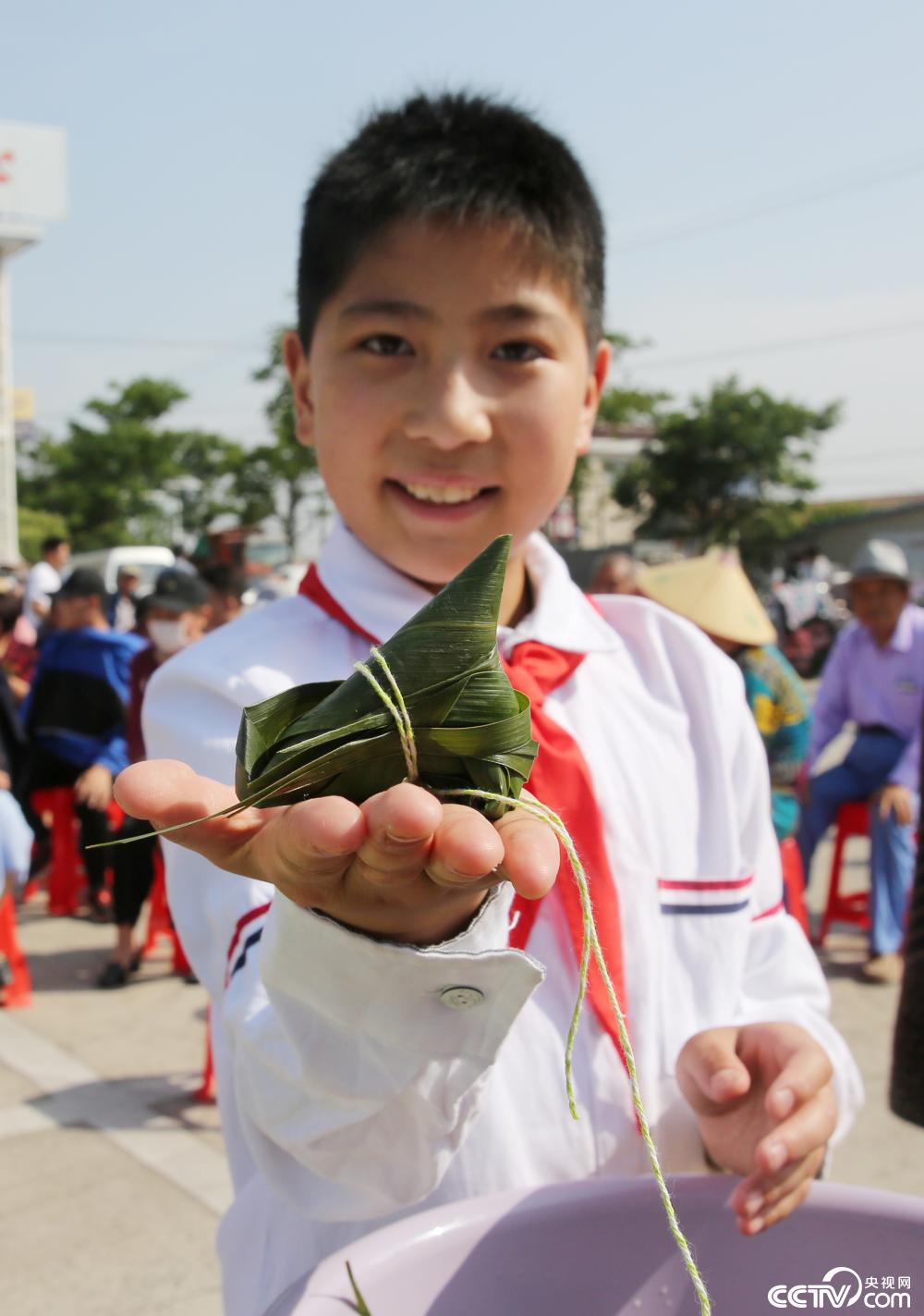 央视网消息:2020年6月7日,在江苏省海安市隆政街道隆政村新时代文明实践站,小朋友展示自己包好的粽子。当日,江苏省海安市隆政街道在隆政村新时代文明实践站举办首届以“邻里一家亲,粽香传文明”为主题的邻里节活动。众多村民欢聚一堂,通过采摘粽叶比赛、包粽子比赛、大手拉小手、志愿者服务等活动,共享夏粮丰收的喜悦,加强村民之间的交流互助,共建美丽乡村、和谐家园。(向中林 殷素萍 摄)