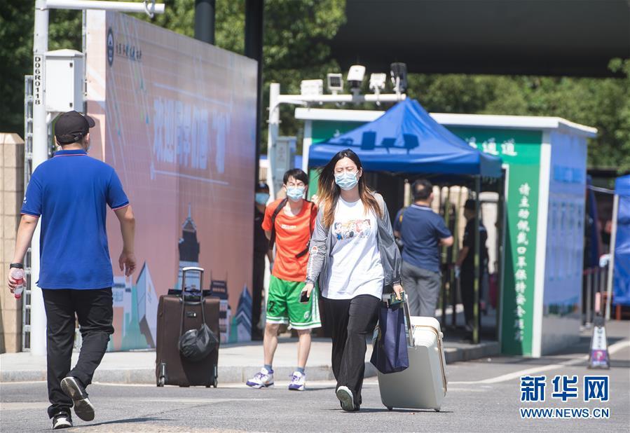 6月8日,在武汉大学,返校学生步入校园。 6月8日起,武汉大学、华中科技大学、武汉理工大学、华中师范大学等多所武汉高校迎来首批返校毕业生。 新华社记者肖艺九摄