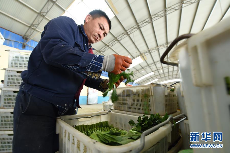 6月8日,粤港澳大湾区“菜篮子”(金昌)生产基地工作人员在检查蔬菜品质。 盛夏渐近,位于甘肃省金昌市金川区的粤港澳大湾区“菜篮子”(金昌)生产基地的多种蔬菜陆续丰收。该基地种植面积达1.3万多亩,采用高效喷灌、精量播种等技术,以及“企业+合作社+基地+农户”的模式,通过轮作倒茬、循环供应的方式,每年可种植蔬菜3至4茬,亩均产量2000公斤左右,总产值达1.5亿元。 新华社记者 范培珅 摄