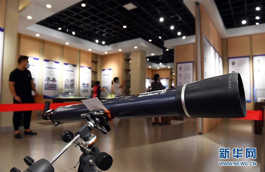 这是6月9日拍摄的天文科普望远镜。 当日是国际档案日,“中科院长春分院历史沿革与重大成果主题展”在吉林省长春市图书馆展出。展览通过历史沿革、院士墙和重大成果展三个单元,系统介绍中科院长春分院的历史,让市民近距离感受“科技国家队”的风采。 新华社记者 林宏 摄
