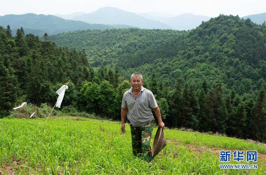5月28日,湖南省双牌县上梧江瑶族乡青春村种植户李言鲜在红米旱稻田里。新华社记者 柳王敏 摄