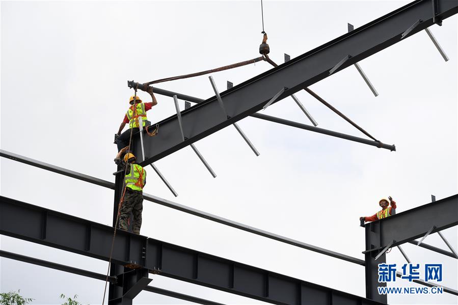 6月9日,工人在位于重庆市巴南区的渝湘高铁重庆段建设工地现场作业。新华社记者 唐奕 摄