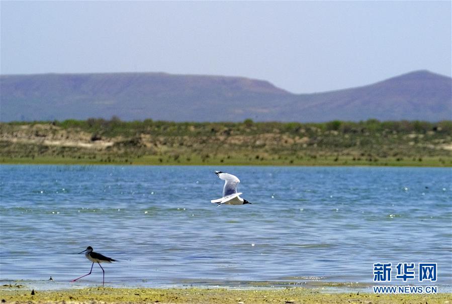 这是6月9日在泊江海子拍摄的黑翅长脚鹬(左)和遗鸥。 近年来,在当地政府的多种措施治理下,曾经水面萎缩的内蒙古自治区鄂尔多斯市境内的泊江海子水量逐渐恢复。近期,包括遗鸥在内的40多种鸟类来此栖息,泊江海子重新成为鸟类的乐园。 新华社记者 贾立君 摄