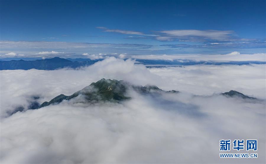 6月10日拍摄的汉中市南郑区龙头山景区的云海景观(无人机照片)。 新华社记者 陶明 摄