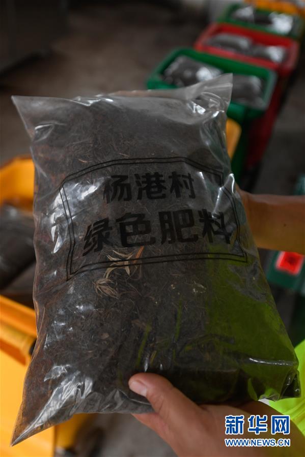6月10日,南浔区菱湖镇杨港村清运人员展示利用有机垃圾生化处理设备处理易腐垃圾制成的一包肥料。 5月起,浙江省湖州市南浔区菱湖镇杨港村生活垃圾智慧平台启用,平台记录211户村民每天易腐垃圾的总量以及每户垃圾分类情况,村民通过参与垃圾分类获得积分奖励,智慧平台的使用推动了乡村垃圾分类工作。 新华社记者 黄宗治 摄