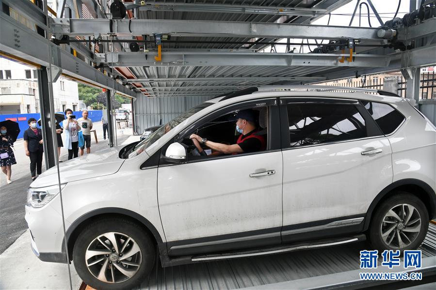 6月10日,一名驾驶员在体验“空中停车”。 近日,山东青岛市市北区一处老旧小区里新建的立体停车场竣工,可为附近居民提供上百个停车位,一定程度上缓解老旧小区停车贵、停车难的问题。据介绍,该处停车场的建设,得益于区人大代表听取社情民意并推动落实,受到百姓的肯定。 新华社记者 李紫恒 摄