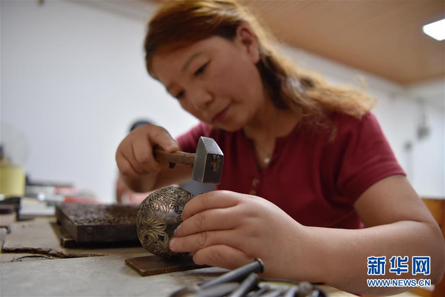 6月10日,在道安银花丝工作室,道安在进行银花丝制作的无胎成型。新华社发(胥冰洁摄)