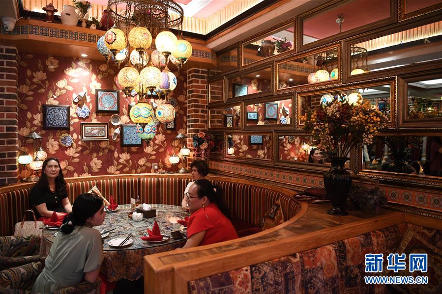 5月27日,人们在新疆和田市“团城”的鸽子巷一家餐厅吃饭。新华社记者沙达提摄
