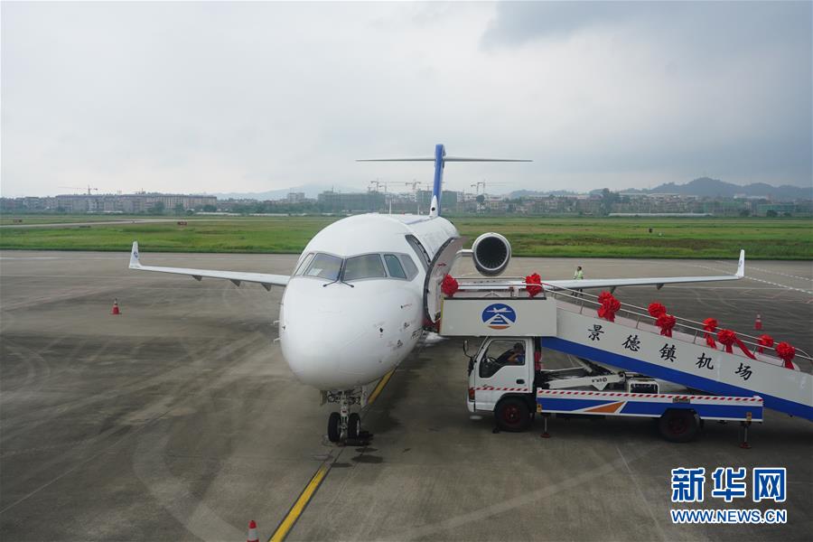 6月10日,“景德镇”号ARJ21客机降落在江西景德镇罗家机场。 当日,江西航空引进的第二架国产支线飞机ARJ21在上海浦东机场交付后飞抵景德镇罗家机场,并正式冠名“景德镇”号。 新华社记者 周密 摄