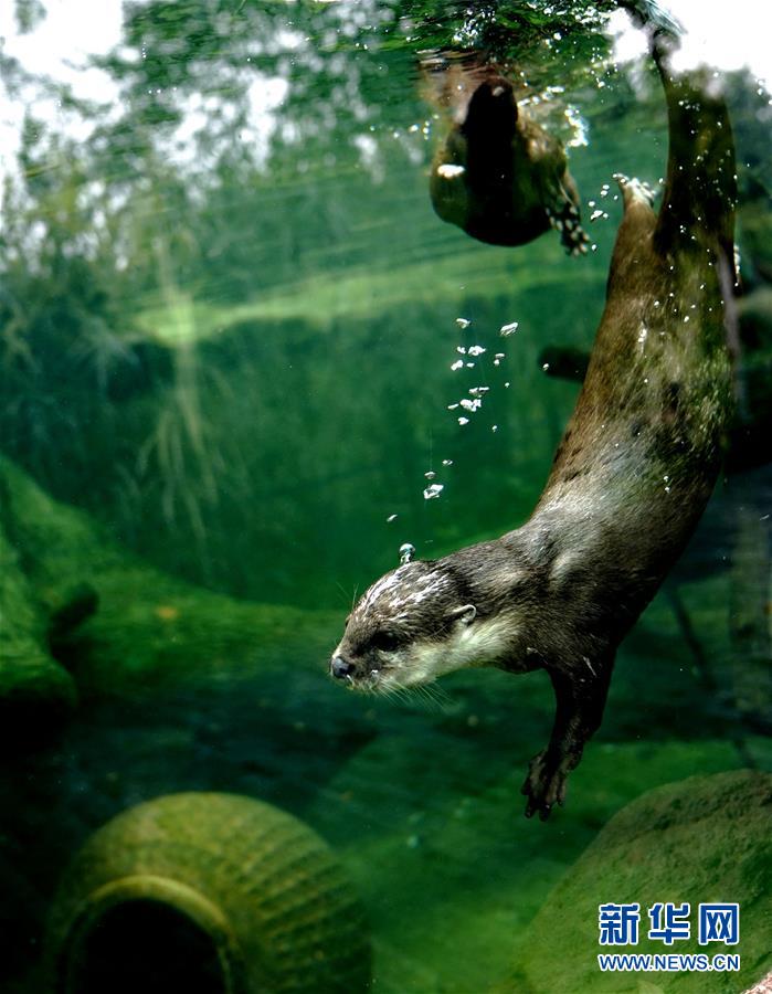 6月10日在上海动物园拍摄的小爪水獭。 新华社记者 张建松 摄