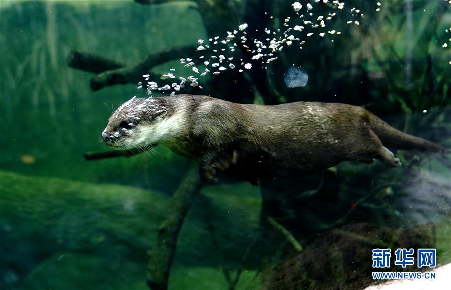 6月10日在上海动物园拍摄的小爪水獭。 新华社记者 张建松 摄