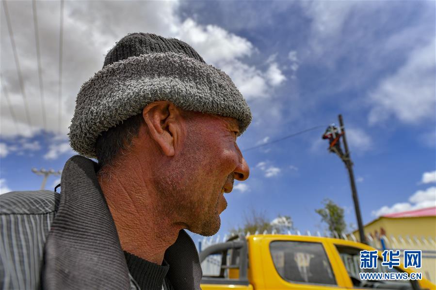 在新疆塔什库尔干塔吉克自治县塔什库尔干乡色日克塔什村,村民在观看光纤入户施工(6月10日摄)。新华社记者 胡虎虎 摄