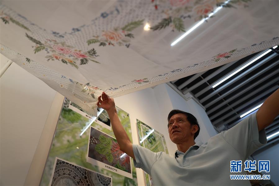 6月3日,国家级非遗项目抽纱传承人陈树泽在检查抽纱作品。 6月,广东省汕头市开埠区的潮汕文艺人才一条街开展“潮汕文艺大师非遗大讲堂”活动,当地一批非物质文化遗产传承人逐一登台,向四方游客展现木雕、陶瓷微书、抽纱等传统技艺。 汕头所在的潮汕地区非物质文化遗产资源丰富,民间文化艺术品种多样,仅汕头一市就有国家级非遗项目13项、省级非遗项目39项、市级非遗项目102项。 新华社记者卢烨摄