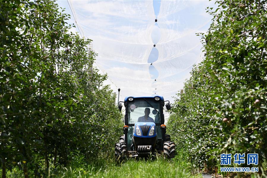 6月11日,农民在贵州省威宁县一处苹果基地里驾驶农机管护果园。 近日,贵州省威宁彝族回族苗族自治县的农民抢抓农时,对苹果园进行疏果、除草等田间管理,呈现出一派夏管农忙景象。 威宁县苹果种植面积50余万亩,苹果产业已逐步成为当地农民增收致富的主导产业之一。 新华社记者 杨文斌 摄