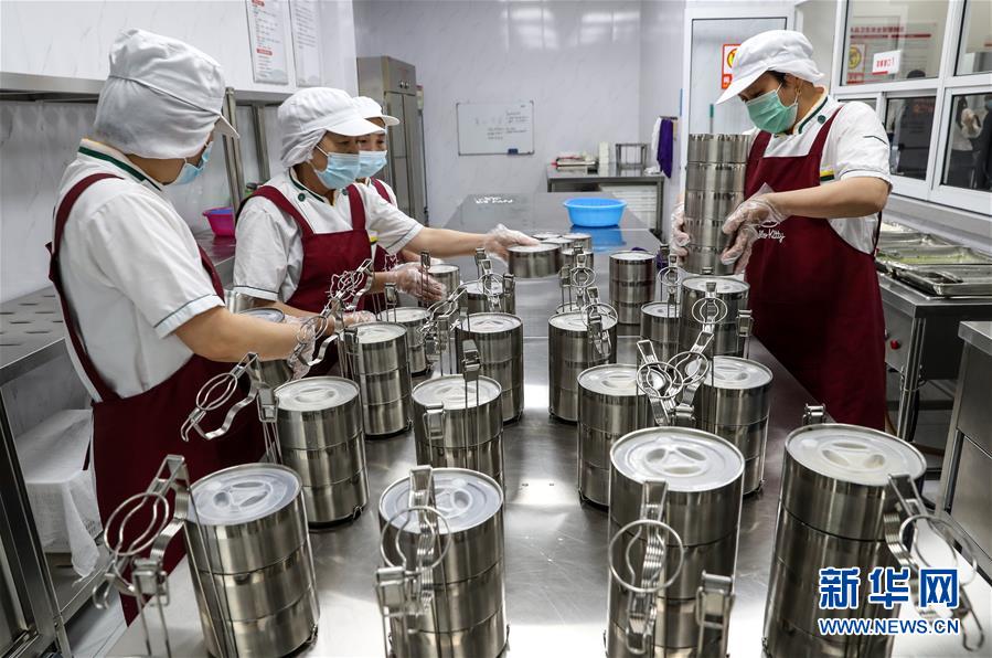 6月11日,“爱心厨房”的厨师们在准备配餐。 今年5月下旬,江苏苏州工业园区娄葑街道“爱心厨房”正式揭牌运营,当地通过“爱心企业+社区社工+爱心志愿者”的接力模式,为社区老人提供从厨房到餐桌的“点对点”供餐服务,让老人足不出户可享受助餐服务,方便社区老人的生活。 新华社记者 杨磊 摄