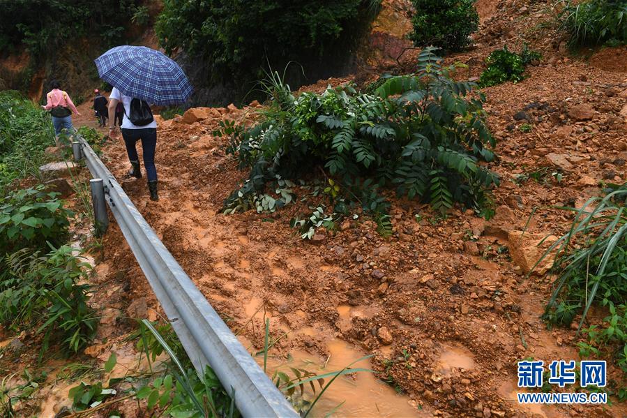 在广西永福县堡里镇板峡村,人们经过山体滑坡路段(6月9日摄)。 据悉,6月1日以来,我国南方地区发生入汛以来最强降雨过程,广西壮族自治区桂林、河池、柳州等9市60个县(市、区)遭受严重洪涝灾害。据初步统计,灾害已造成广西145.9万人受灾,6人死亡,3人失踪,22.1万人紧急转移安置。 11日,应急管理部会同国家粮食和物资储备局,向广西紧急组织调拨3000顶帐篷、3000张折叠床,支持地方救灾工作,保障受灾群众基本生活。 新华社记者 陆波岸 摄