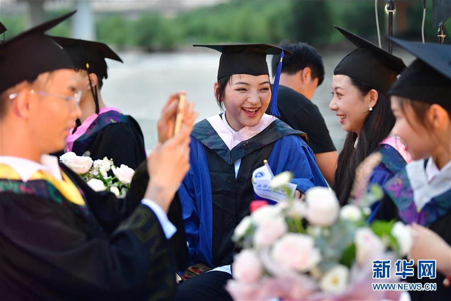 6月11日,西北师范大学毕业生代表在黄河游轮上参加毕业季特别活动。新华社记者 陈斌 摄