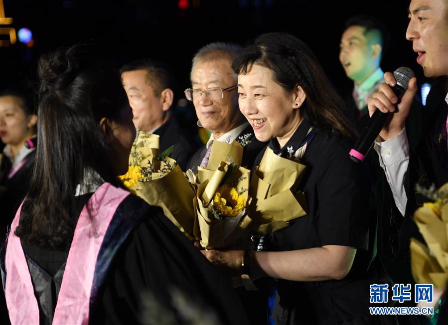 6月11日,参加活动的西北师范大学毕业生代表在黄河游轮上给教师献花。新华社记者 陈斌 摄