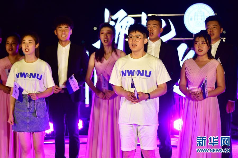 6月11日,西北师范大学的毕业生在黄河游轮上表演节目。新华社记者 陈斌 摄